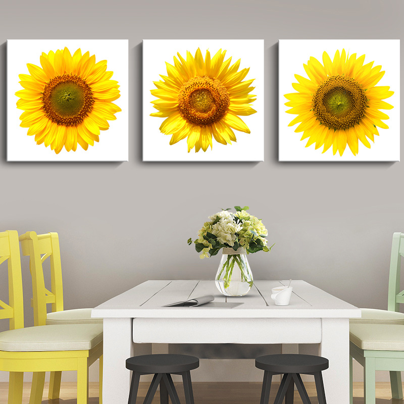 韓国風の小さい清新なヒマワリの花のレストランの客間の装飾画の卸売りの太陽の花の風景の内の枠画