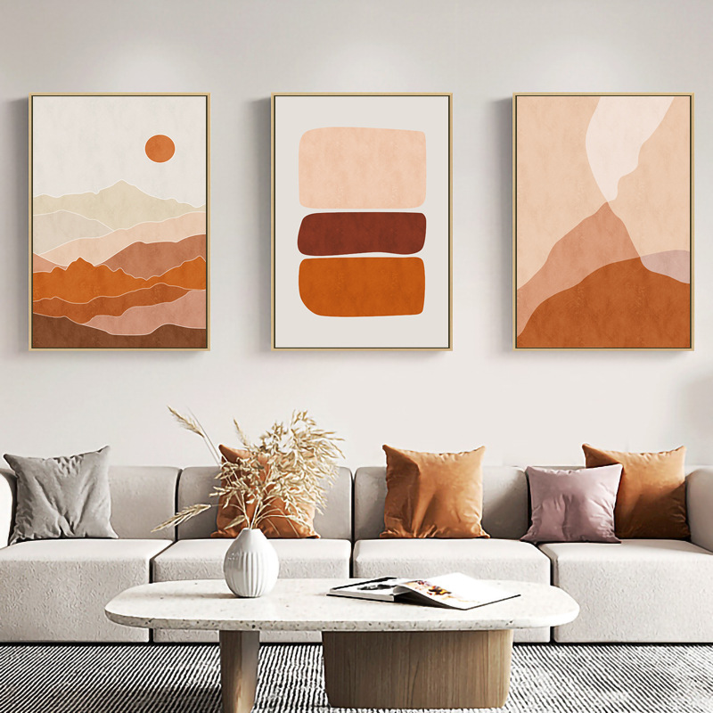 シンプルで現代的な抽象的な三連の組み合わせのリビングルームの装飾画