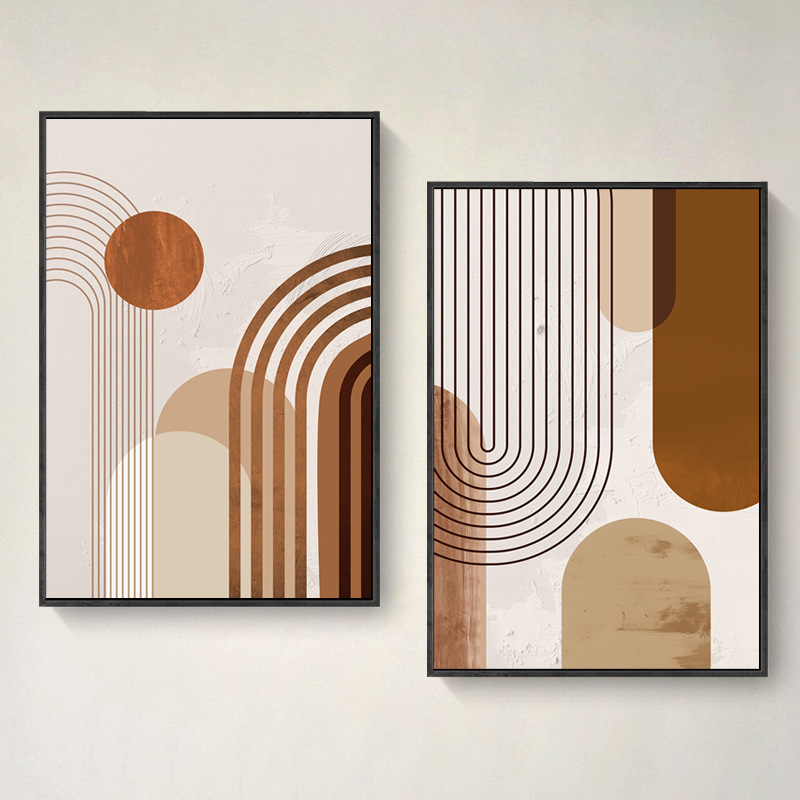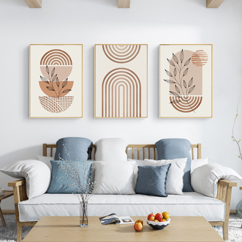 北欧風現代抽象モランディ色幾何学線植物客間装飾画マンション民宿有枠掛け絵