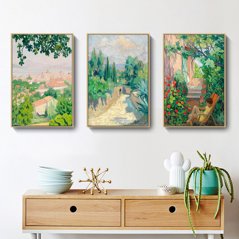 モダンなシンプルなリビングルームの装飾画はヨーロッパ風の油絵の風景を噴き出しています。