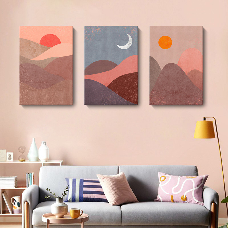 北欧モランディ幾何学色ブロック山脈抽象太陽月客間装飾画ベッドサイドソファー背景壁画