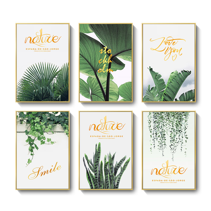 シンプルな北欧の緑の緑の葉の装飾画の客間の金色のアルファベットの小さい清新なホテルのマンションの民宿の客間は絵を掛けます。