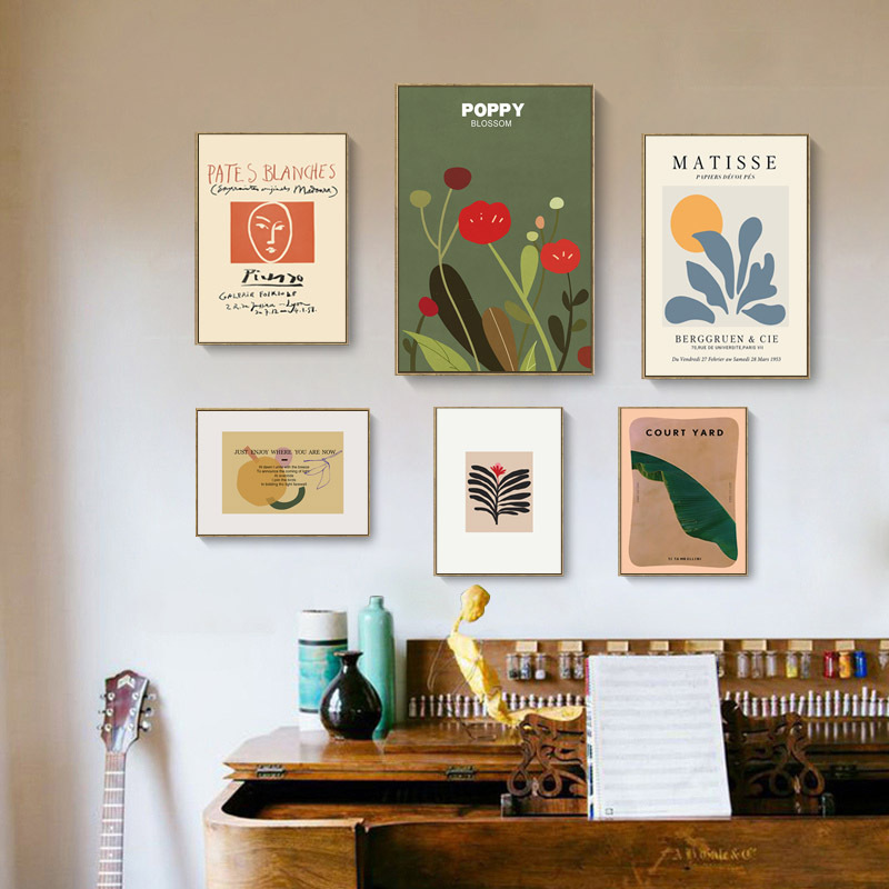 北欧の小さい清新なマティスの抽象的な植物の葉の線の小さい大衆の文芸の組み合わせの装飾画の客間のレストランは絵を描きます。