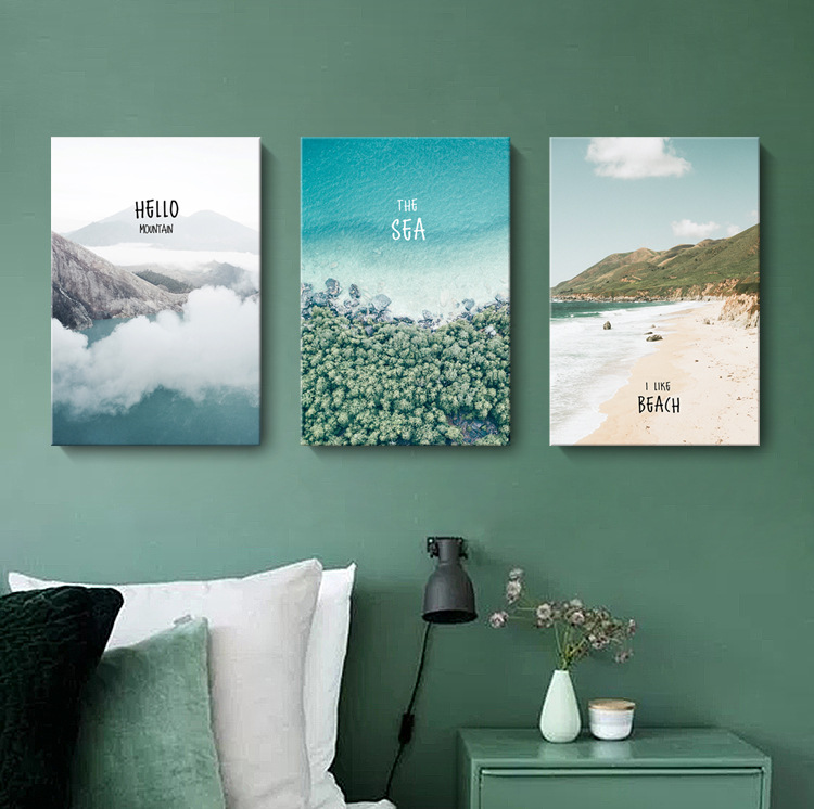 現代シンプルな北欧装飾画三連水彩風景玄関客間ホテルマンション掛け絵卸売り