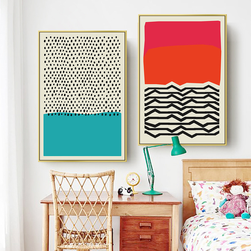 現代のシンプルなリビングルームの装飾画の風景の幾何学的な建築ホテルのマンションの民宿の北欧の掛け画は国内の枠にまたがります。