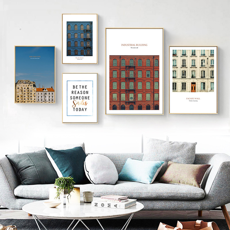 モダンなシンプルなリビングルーム装飾画北欧レトロ建築組み合わせ風景壁画ホテルマンション民宿掛け絵