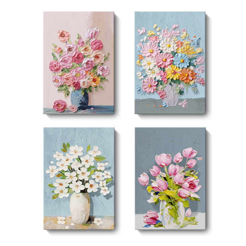 現代客間装飾画クリーム風花卉ピンク微噴油絵レストラン寝室壁画クロスボーダー無枠画