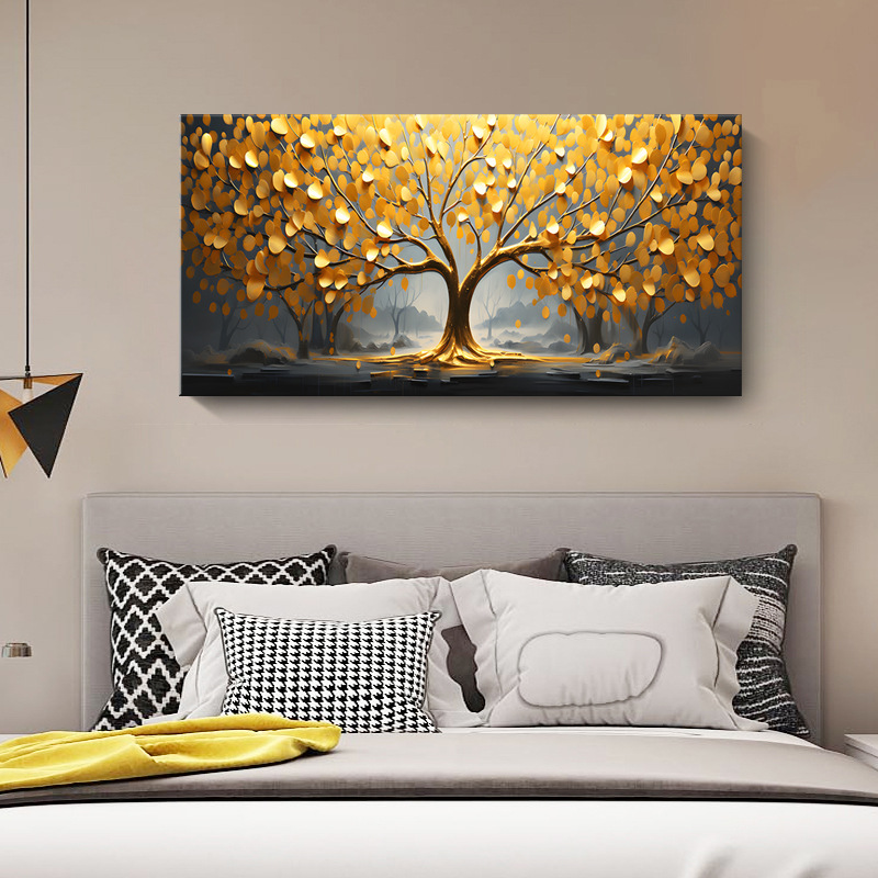 装飾画の軽い贅沢な金持ちの木の風景は油絵のレストランの寝室のホテルのマンションの民宿の横断幕のベッドの上で絵を掛けます。