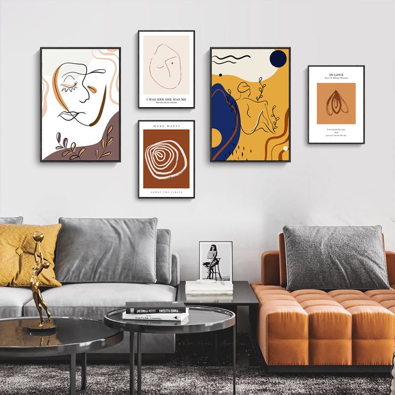リビングのシンプルな装飾画北欧ins風レトロな色の線