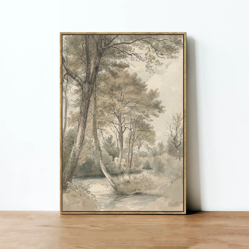 現代のシンプルな装飾画の中古風スケッチの木の植物の風景はホテルの民宿のマンションを掛けて枠がない絵があります。
