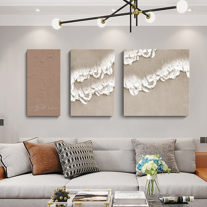 北欧のリビングルームの装飾画は寂しい風の砂浜の波のソファーの背景の壁の3連画の壁画のマンションの民宿は絵を掛けます。