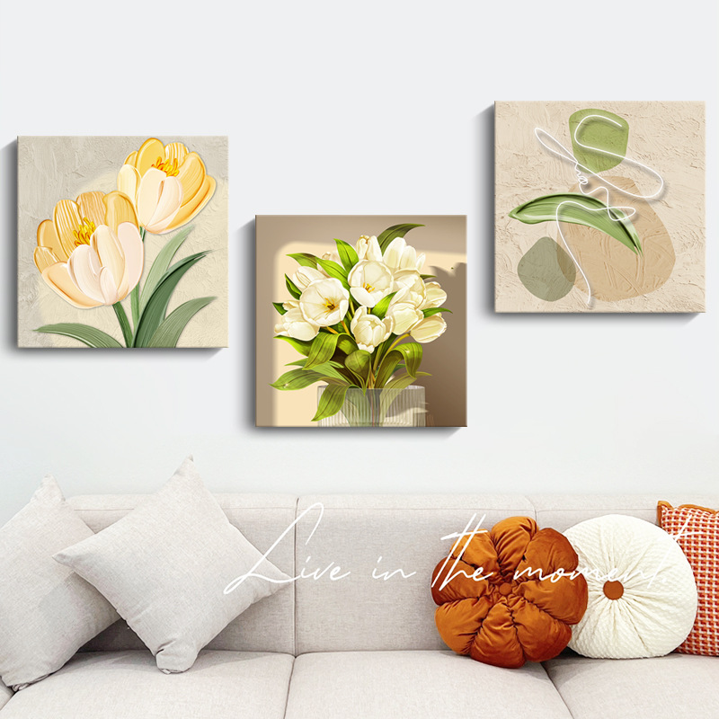 北欧装飾画客間レストランクリーム花卉シンプル背景壁清新マンション民宿原木風掛け画