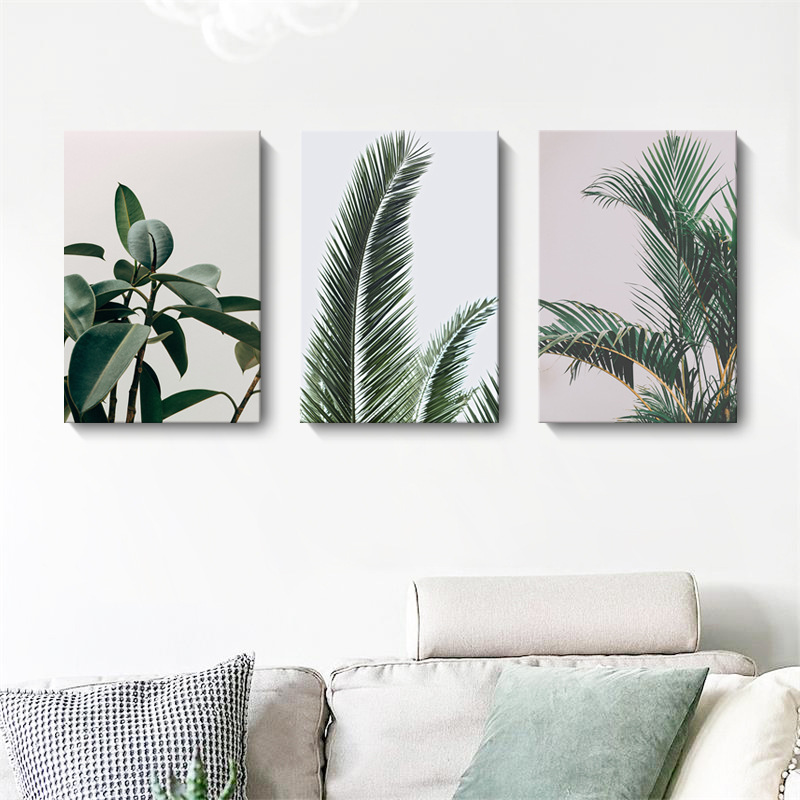 モダンなシンプルなリビングルームの装飾画緑の葉のレストランの寝室の壁画北欧のソファーの背景の壁は枠なしです。