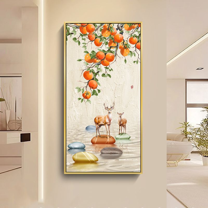柿柿如意装飾画新中国式通路廊下装飾画壁画玄関入戸客間掛け絵無枠画