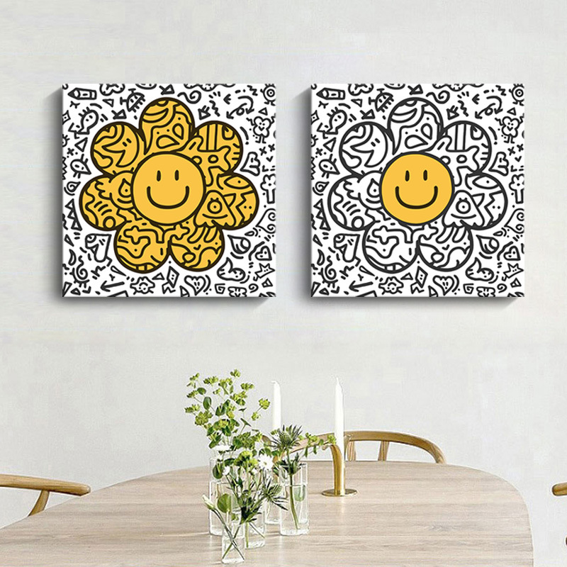 装飾画癒し系笑顔太陽花客間シンプル現代レストラン寝室掛け画内枠無枠画クロスボーダー