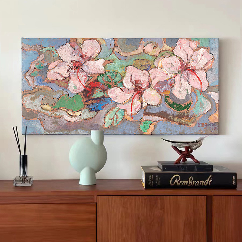 客間装飾画抽象花卉スプレー画筋理中古風ホテルマンション無枠画レストラン寝室掛け画