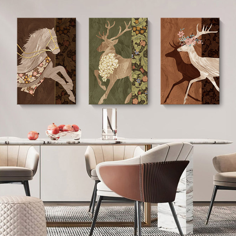 現代のシンプルな装飾画の中古風の噴絵の筋理の油絵のヘラジカの象の馬のマンションのホテルの民宿は絵を掛けます。