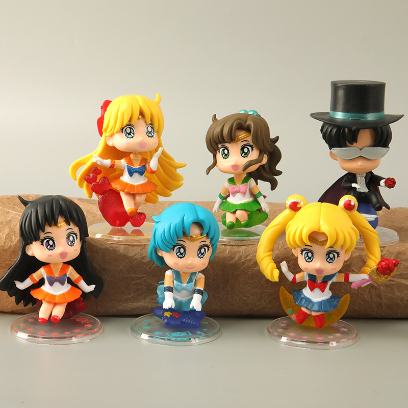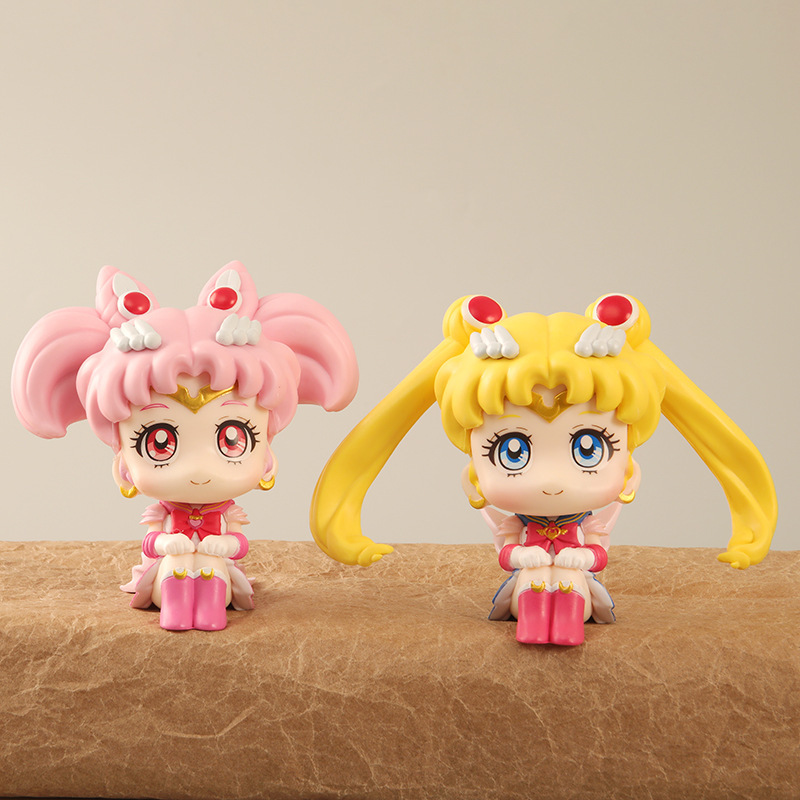 2種類の美人の戦士の手はアニメの漫画の座っている姿の月野のウサギの小さいウサギの公仔のおもちゃの置物を作ります。