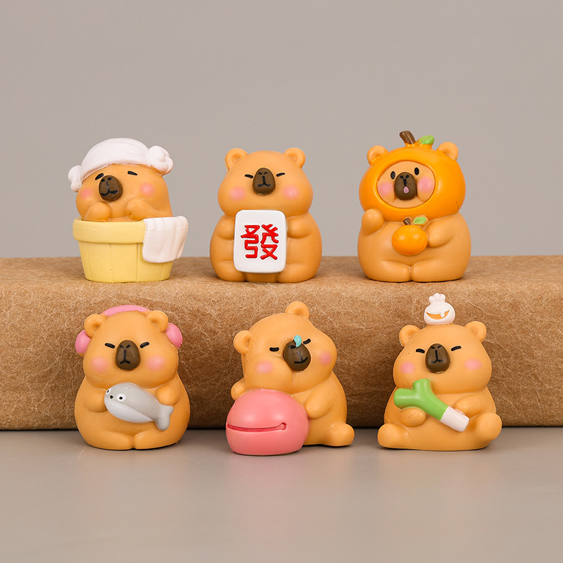 6種類のカピバラのカピバラの手作りアニメアニメのかわいい癒し系動物のぬいぐるみのテーブルの装飾置物