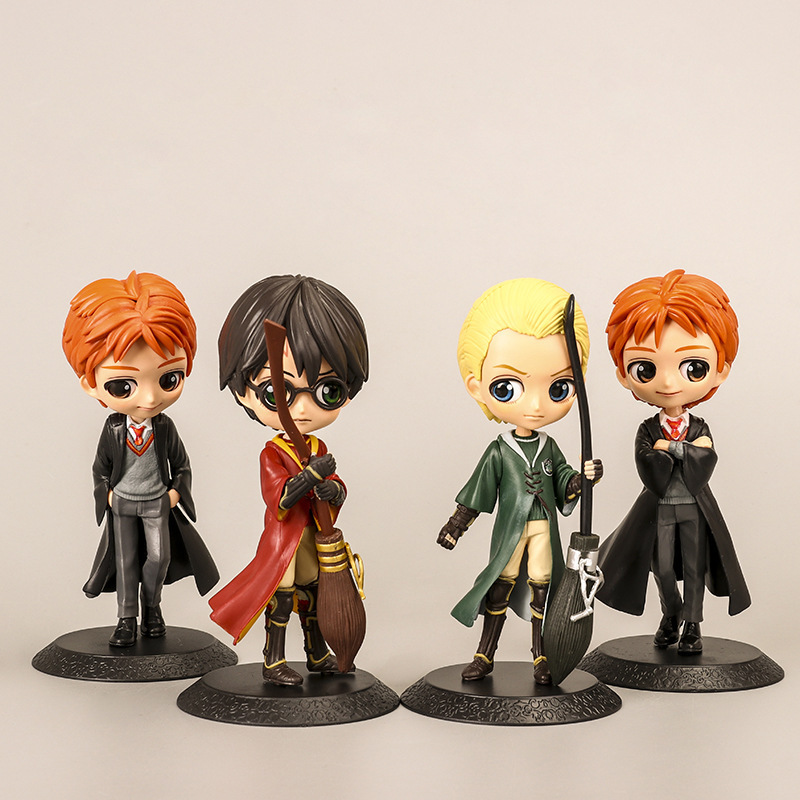 4種類の大きな目のポッターの手でアニメの漫画のマルフォレイドのジョージのおもちゃの公仔のケーキの置物をします。