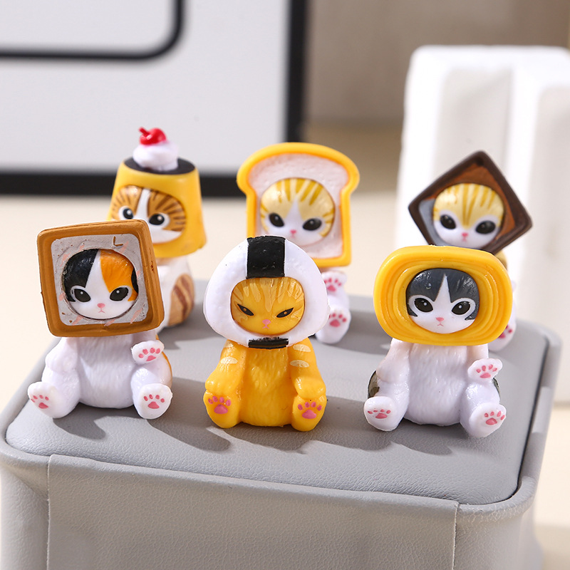 6 パン猫フィギュアアニメーション漫画座り姿勢かわいい動物ドレスアップ猫車デスクトップワークステーション装飾品