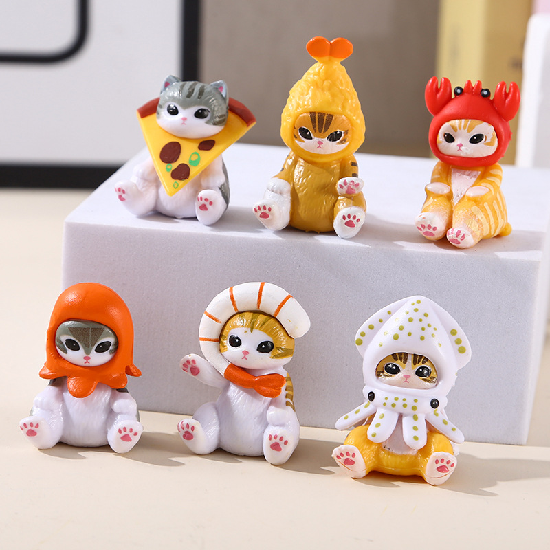 6種類の社会の長兄の猫の手は模型のアニメ・漫画の不良な混合の動物の猫の子供のデスクトップの小さい置物を作ります。