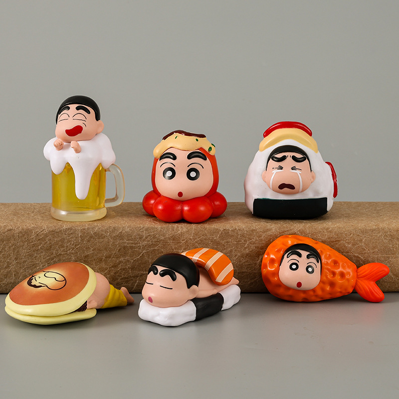 6種類の美食のしんちゃんの手はアニメの漫画のビールのおにぎりの寿司のどら焼きをして新しいのを助けます。