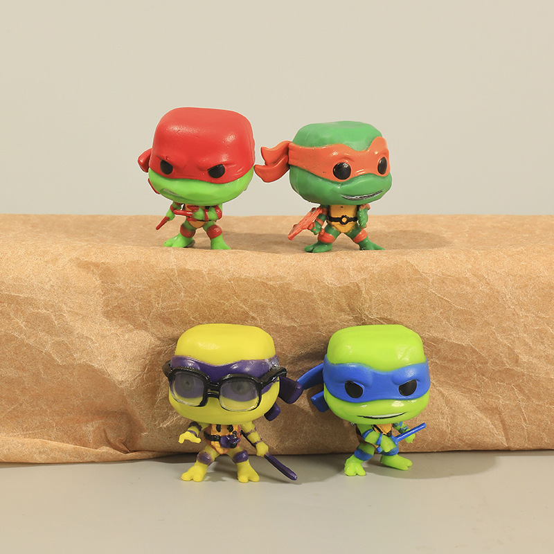 4種類の神亀の手はアニメの漫画の忍者のカメの青い落雷の赤い豆の氷の新しい奇士の紫の包みの公仔の置物を作ります。
