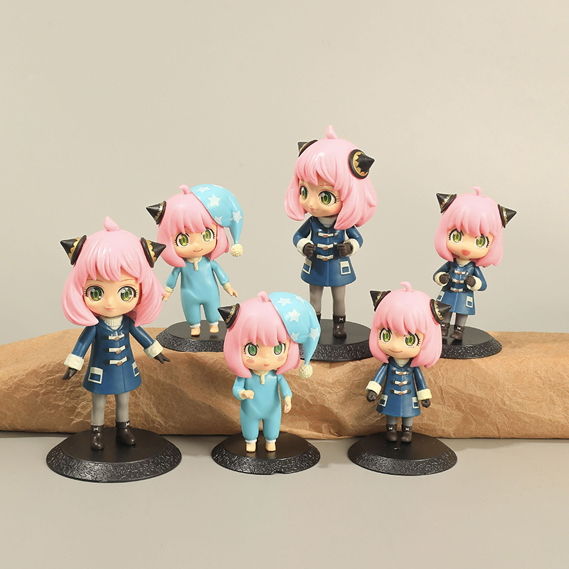 6種類のままごとの手はアニメの漫画の大きい目のパジャマのアニヤの子供のデスクトップの装飾の置物を作ります。
