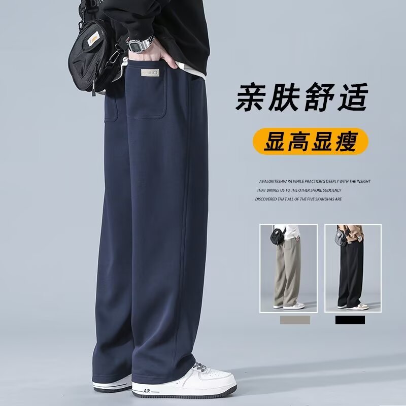 アメリカ式の垂感のスポーツズボンの男性の春の夏の高い街の広い足のカジュアルなズボンのまっすぐな筒のゆったりしている大きいサイズのズボンの衛のズボン