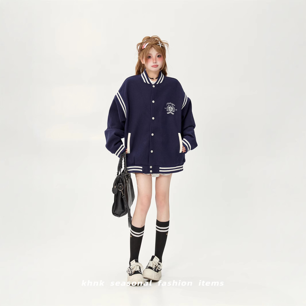 春のスエードの野球服の女子学生の秋冬2025新型の韓国系の甘い妹はカジュアルなゆったりしているジャケットを着ます。