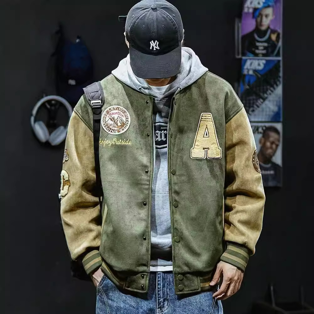 コントラストカラーのステッチ刺繍ジャケットメンズ春秋ルーズ野球ユニフォームトレンディブランドカジュアルトップスジャケットストリート