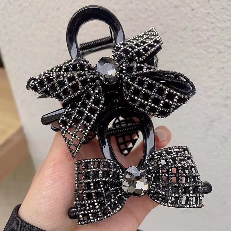 ネットの赤い軽豪華なドリルのチェス盤の蝶結びのクリップの女性の新型の後頭部のヘアピンの秋冬の高級感のサメのクリップ