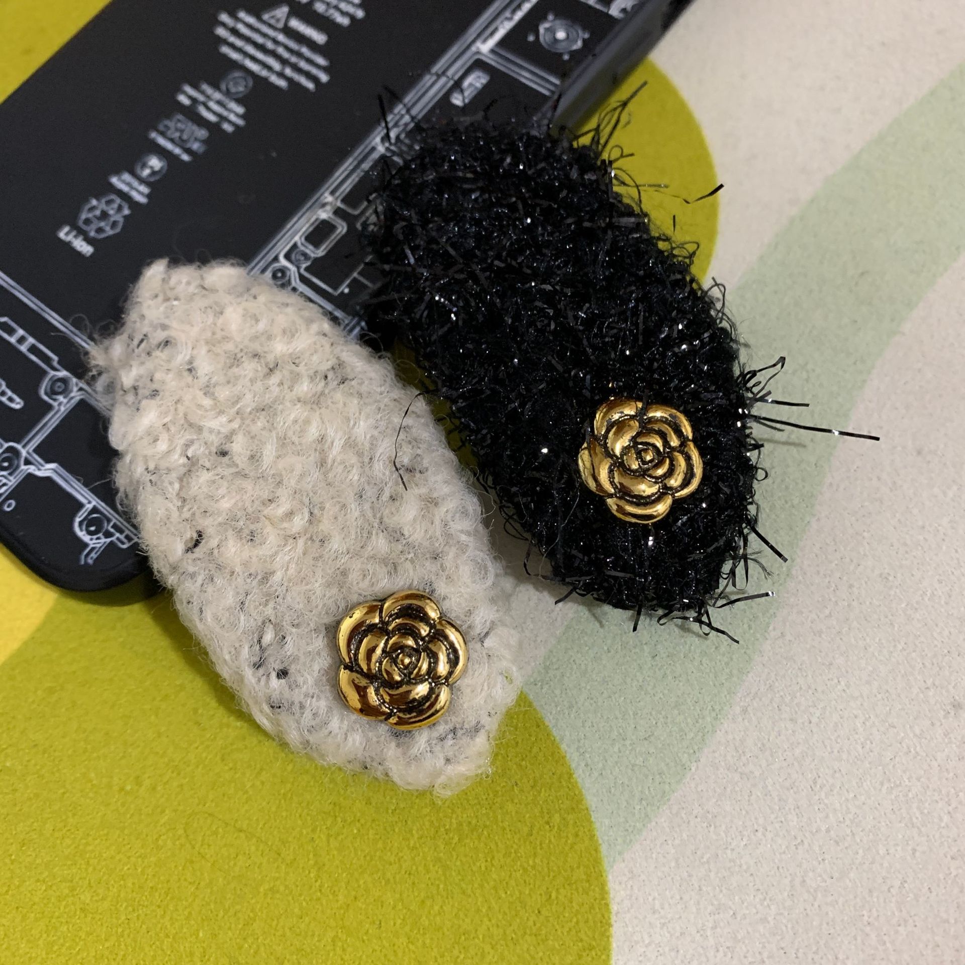 レトロなツバキの花bbクリップは子羊の毛の女性の側の前髪クリップの後頭部の髪クリップの飾りをまねます。