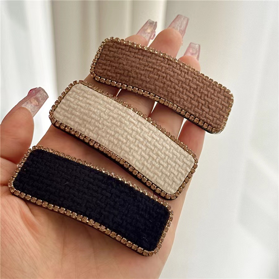 千笙秋冬シンプルなレトロな布芸のヘアピンには、ダイヤモンドの幾何学的な少女の痕跡のない格子縞の前髪クリップがあります。