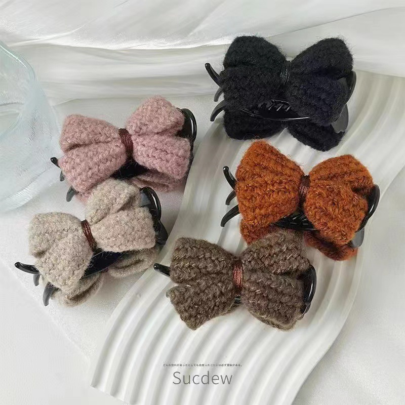 おしゃれで可愛いお団子の頭に挟まれています。女性の秋冬毛糸の蝶結びです。