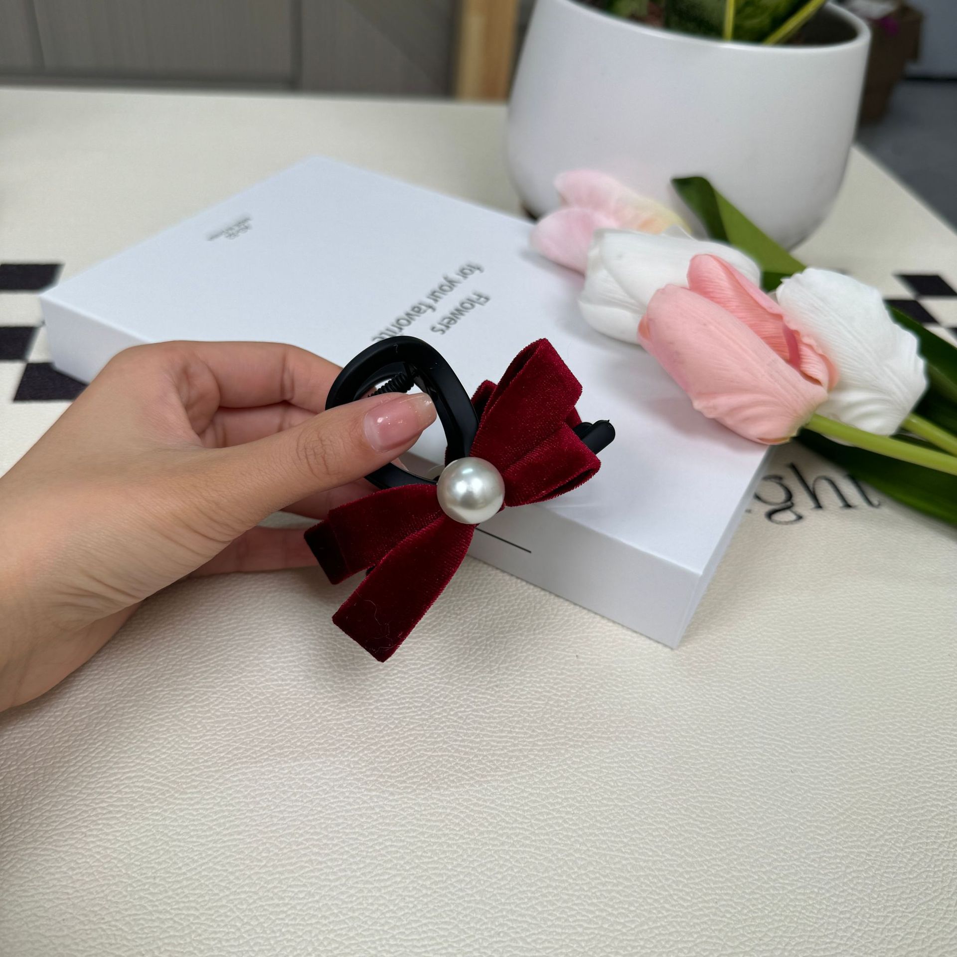 秋冬レトロ小香風蝶結びヘアクリップファッション百合気質真珠名媛風高馬尾頭飾り