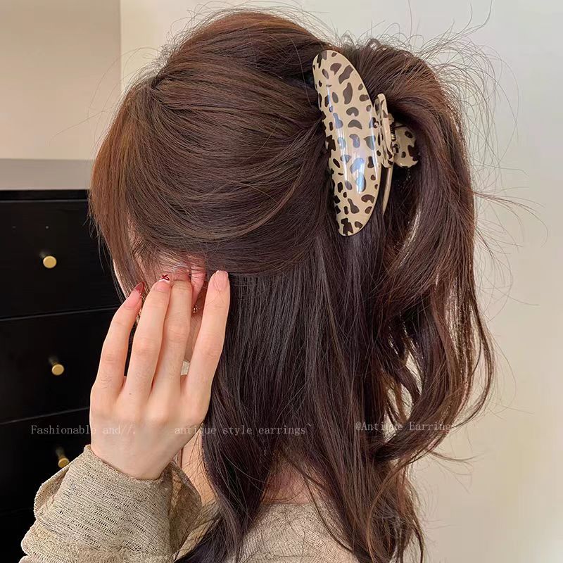 大きいサイズのカレー色のヒョウの紋様は女性の2025新型の高級感の皿の髪を挟みます。