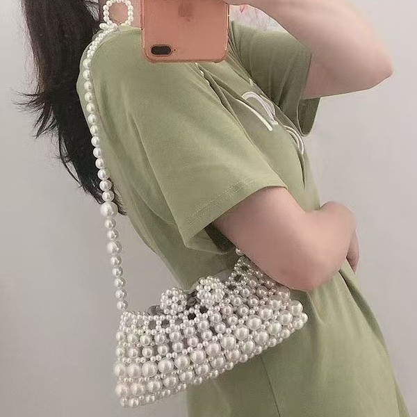 ファッショナブルでハイエンドの女性用脇の下バッグ韓国版イントレンド織りパールバッグ2025新しいニッチショルダーバッグ女性用