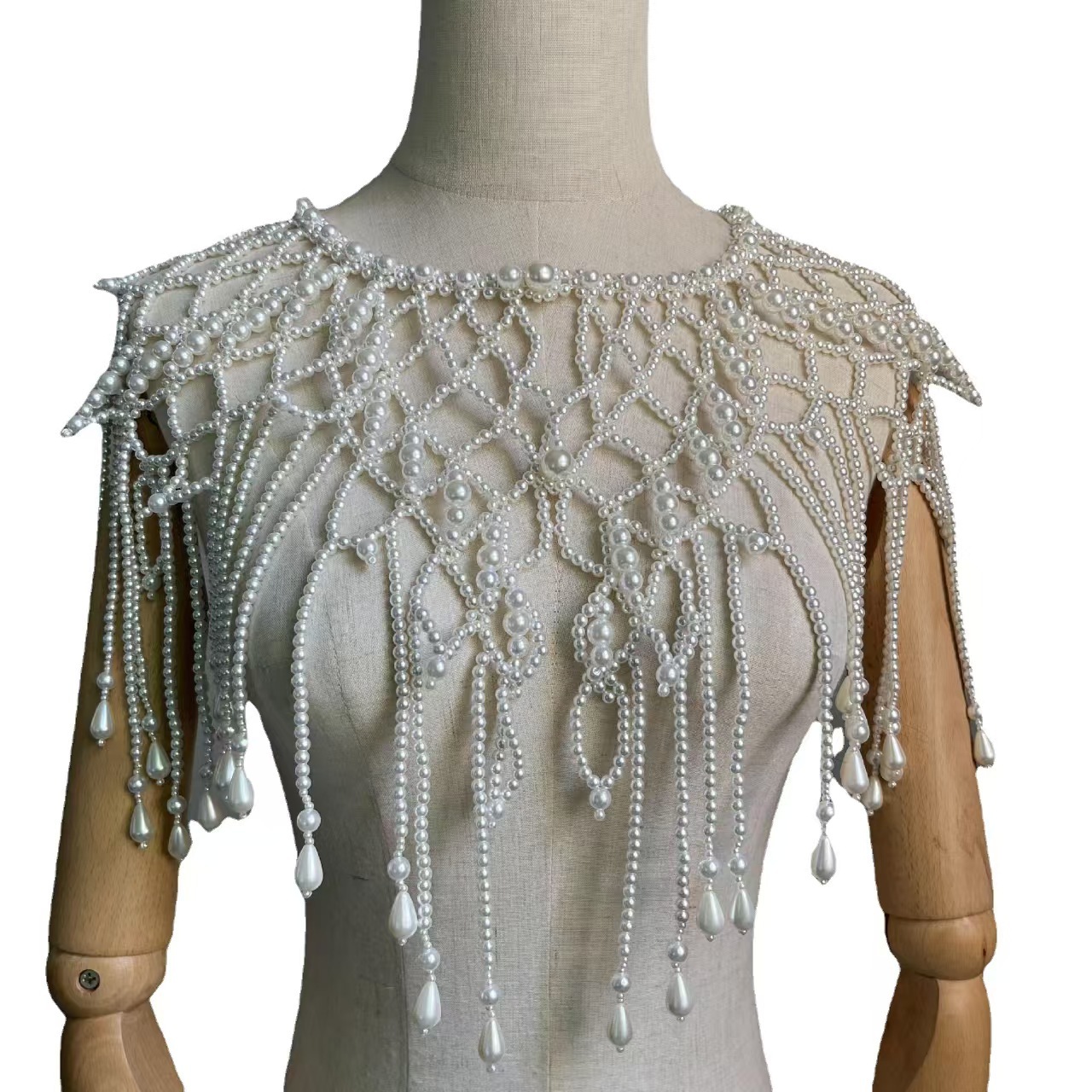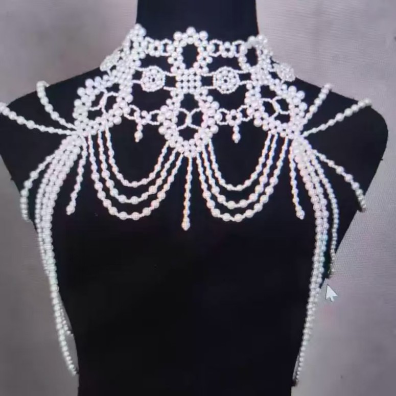 ヨーロッパとアメリカのクロスボーダー多層パールネックレスファッション誇張ショールハイエンドボディチェーンセクシードレス