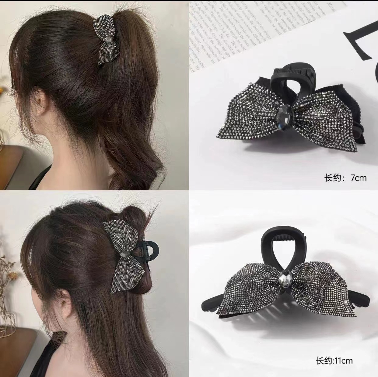 韓国の黒い蝶結びのヘアピンがキラキラと輝いています。