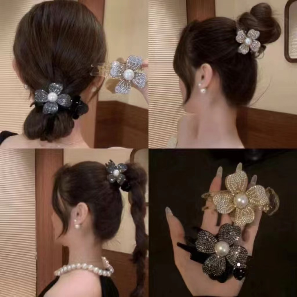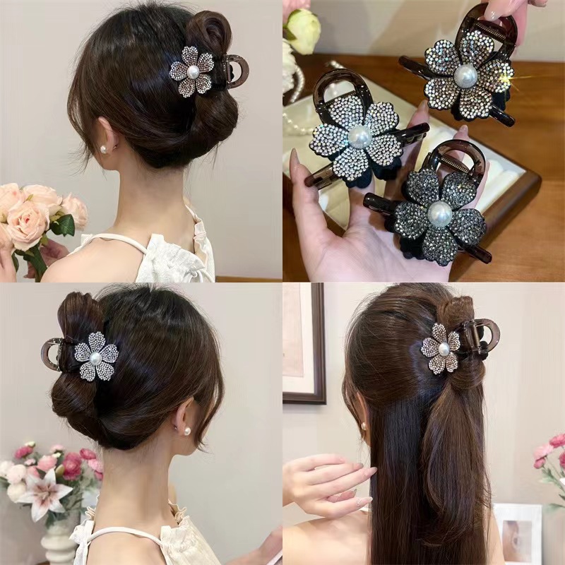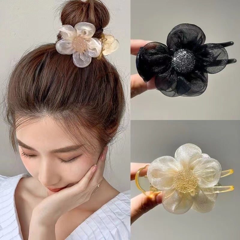 2024新型春夏水ドリルサメクリップ中号アクリル花後頭部ヘアピン髪飾り女