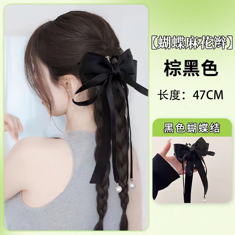 かつらのポニーテールの蝶結びの鞭は古風の漢服を挟みます。