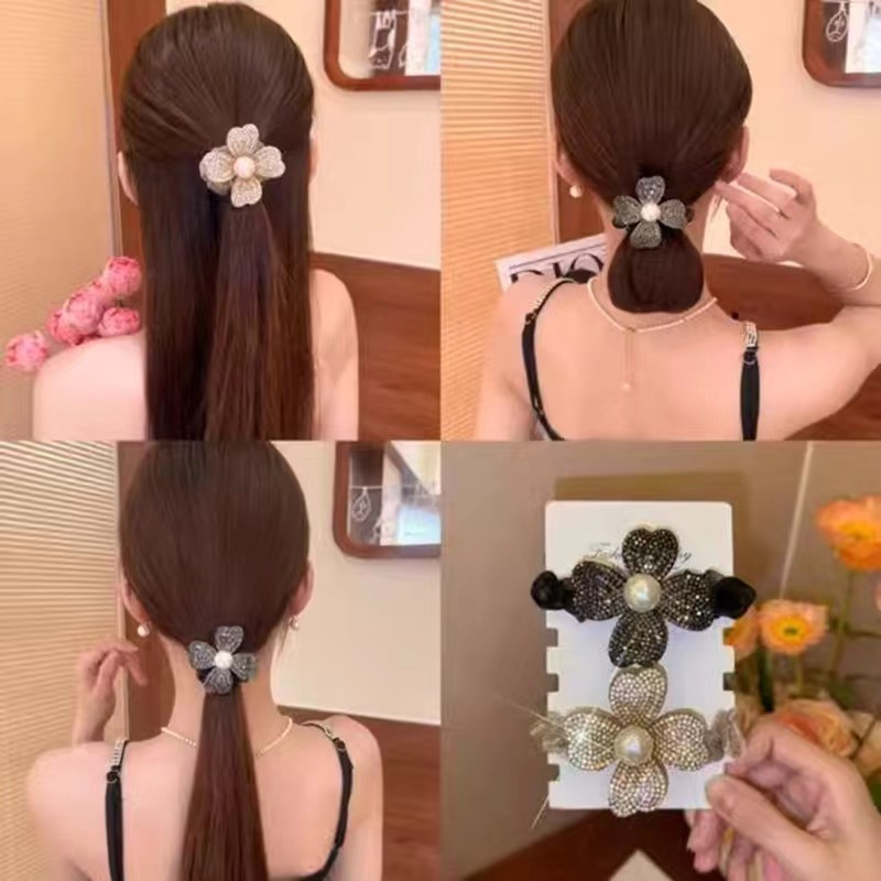 ドリルは真珠の花のポニーテールをまねて中号の女性の後頭部の髪を挟んで気質の半分を刺します。