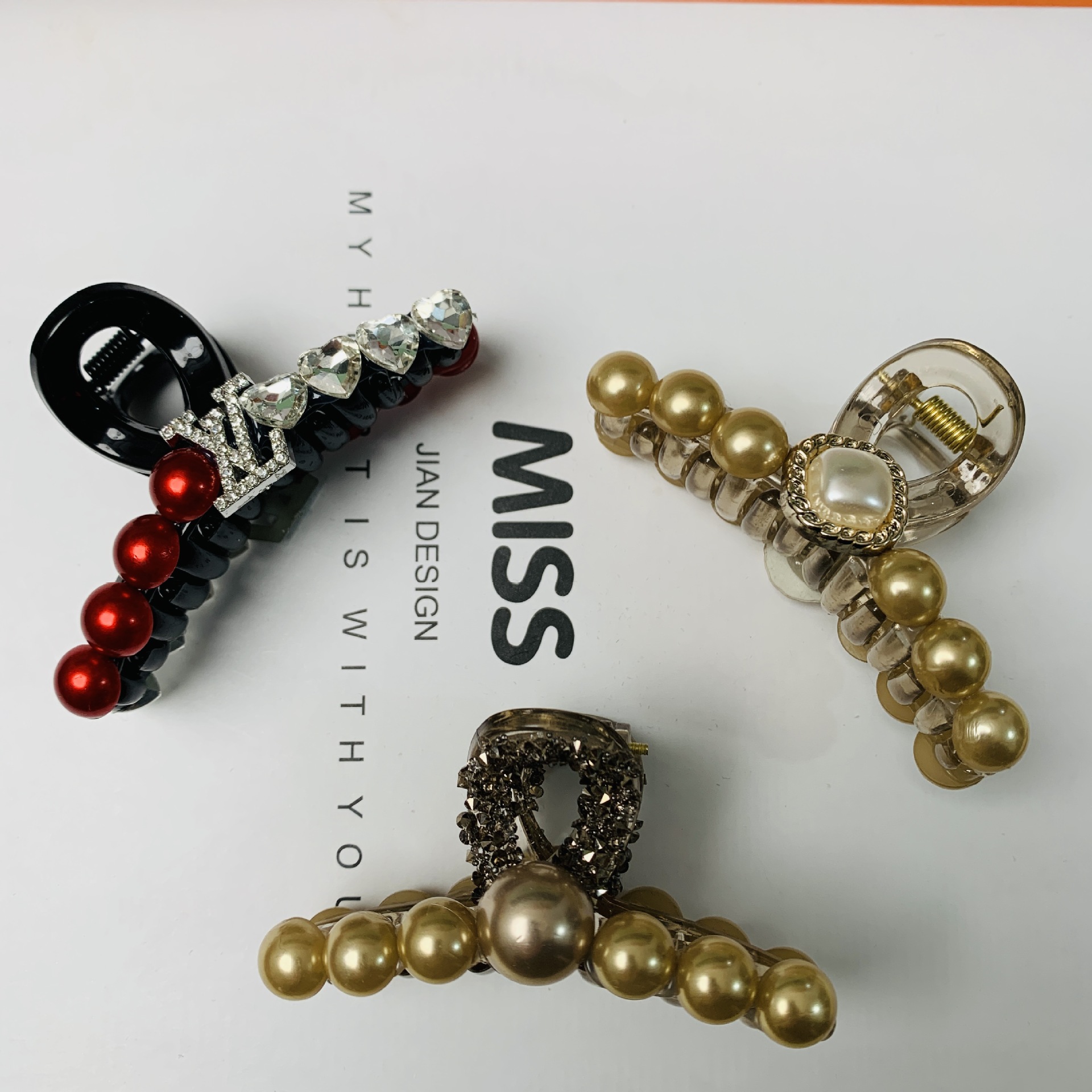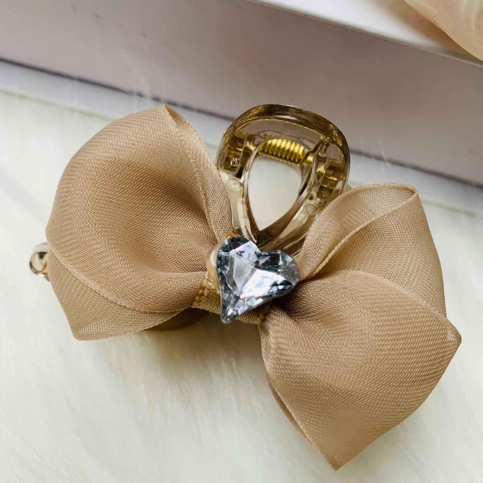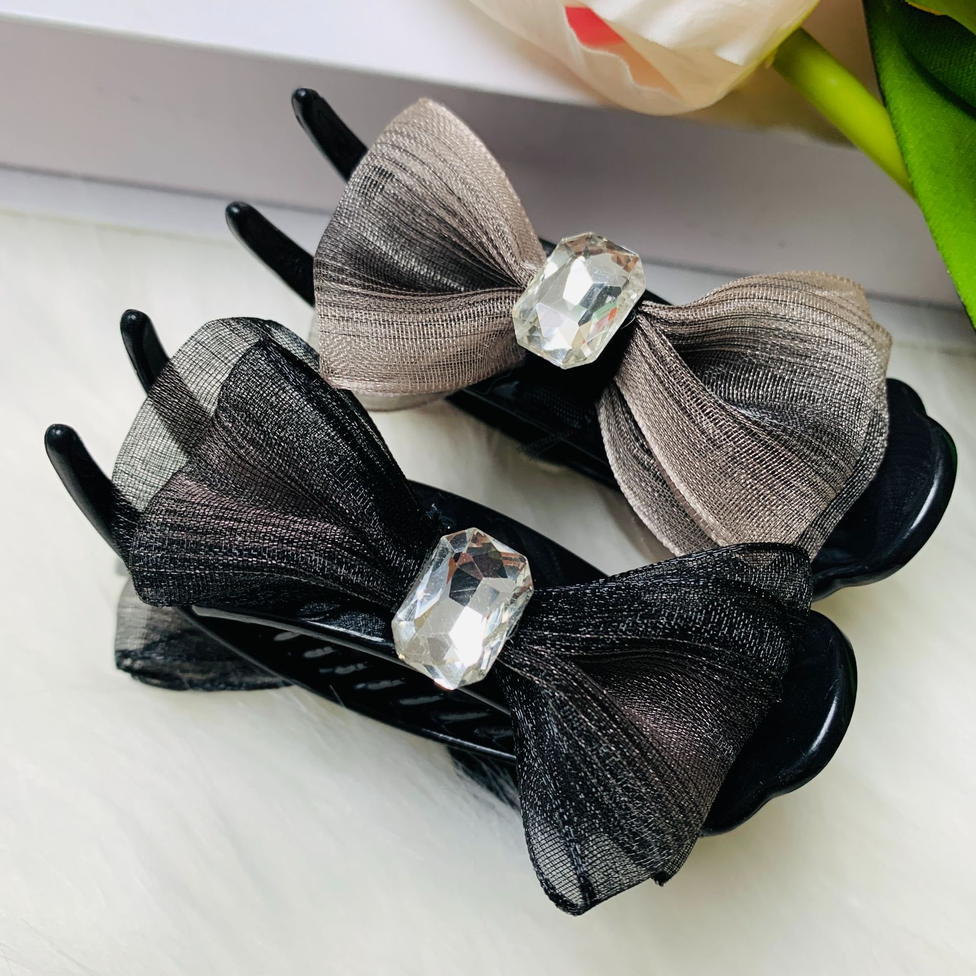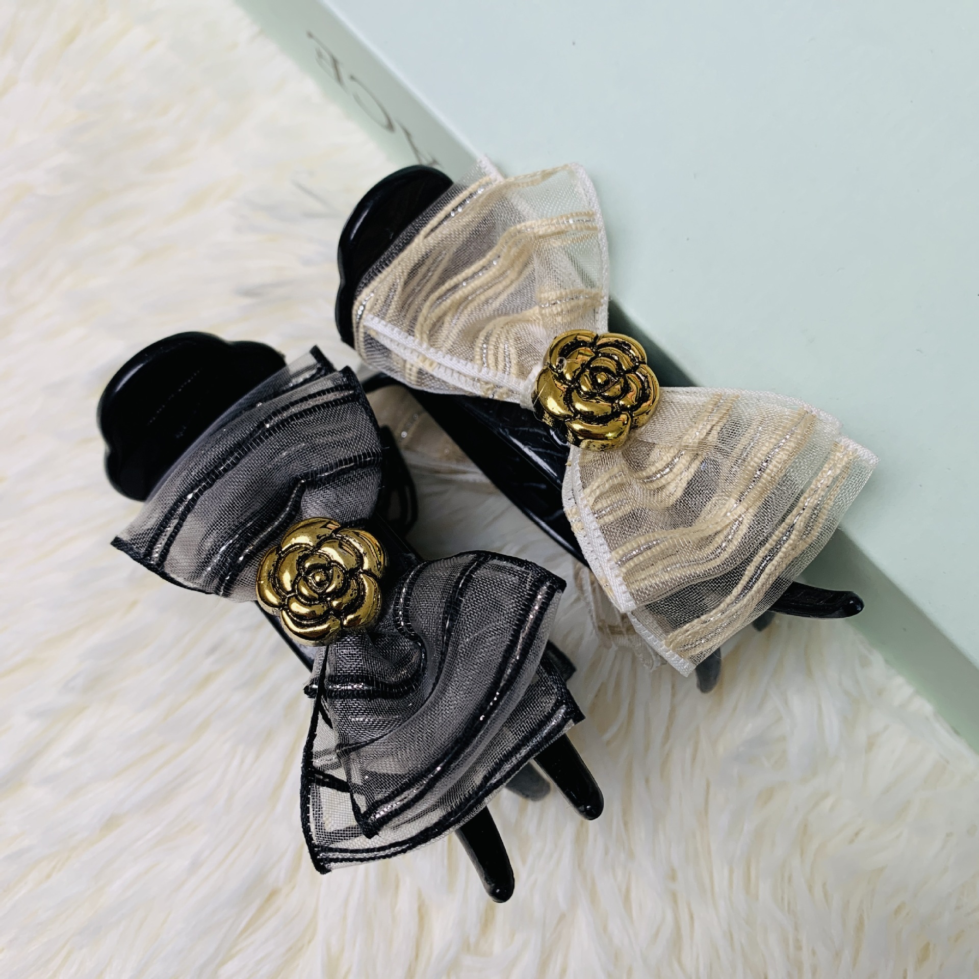 韓国の新型ネット紅両面網紗蝶結びアクリルドリル高女馬尾気質クリップ髪飾り
