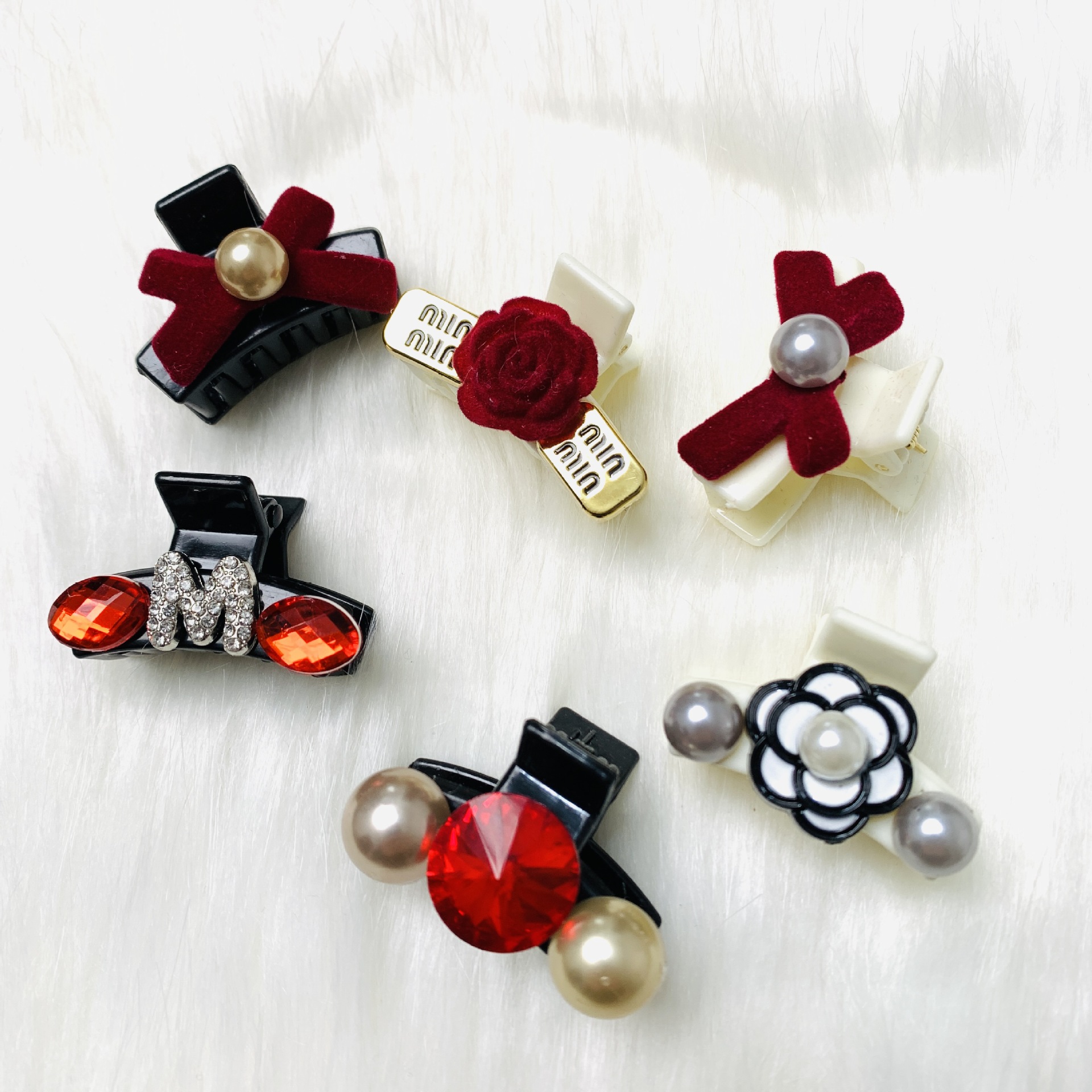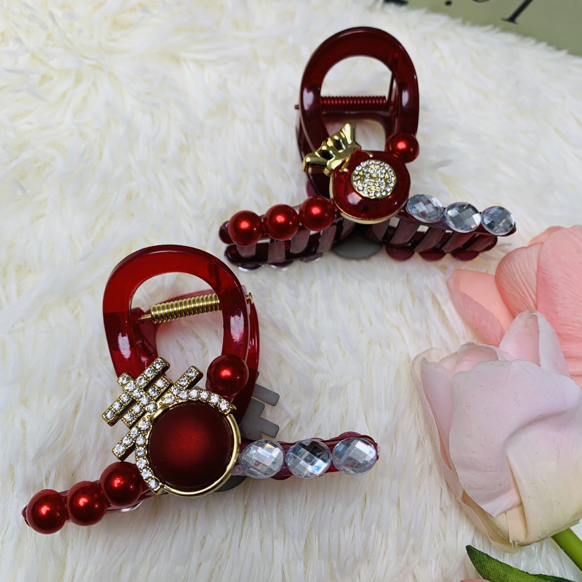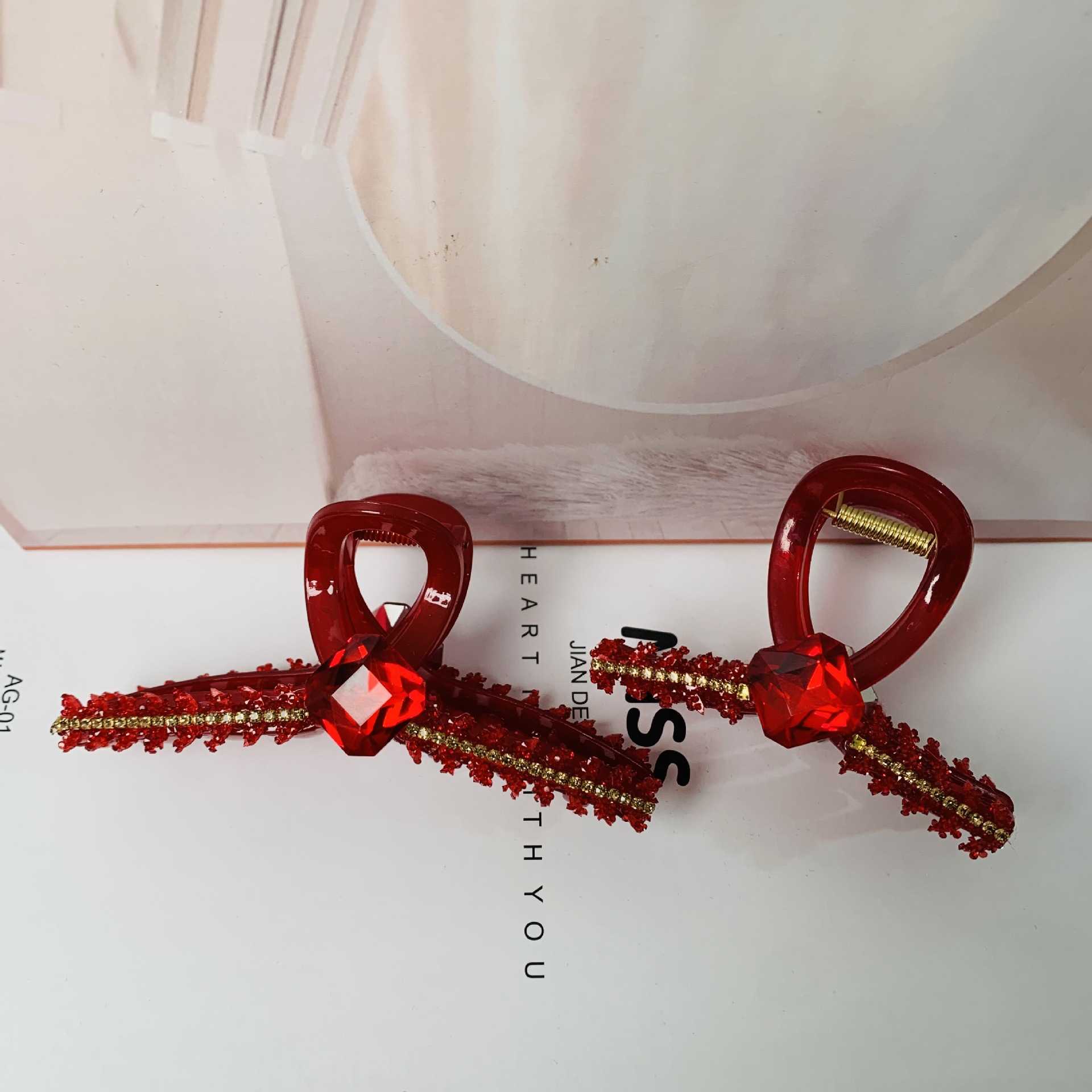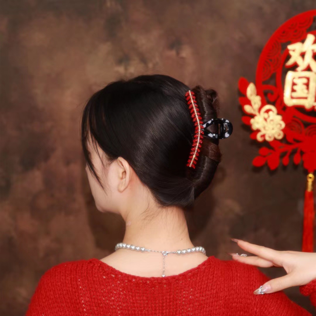 2024喜慶紅本命年水ドリル麦穂クリップ後頭部盤髪クリップファッション百合サメクリップ頭飾り