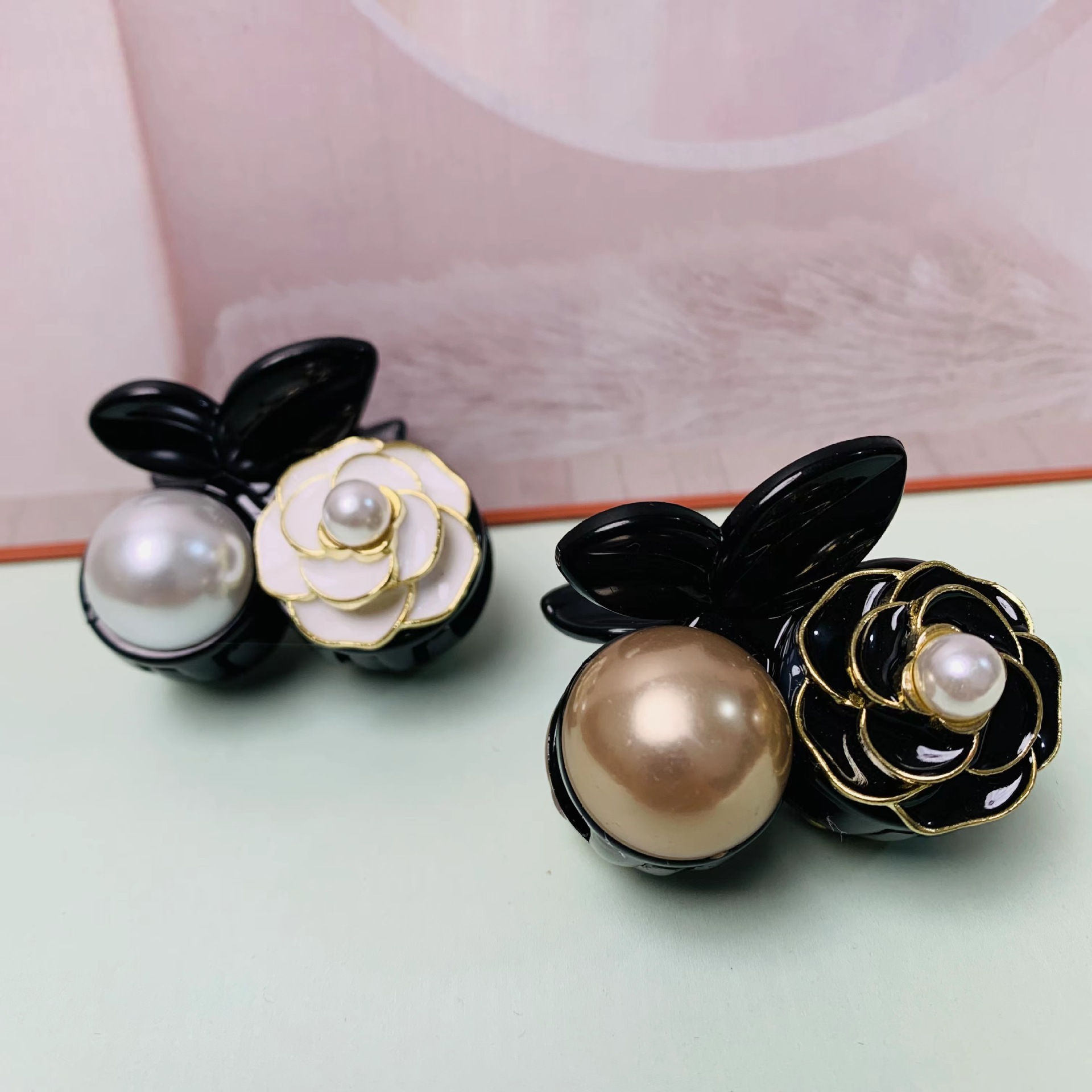 新しいレトロな気質の真珠のツバキの花のヘアピンの後頭部感はサメの魚のクリップの気質の髪のクリップの頭飾りを挟みます。