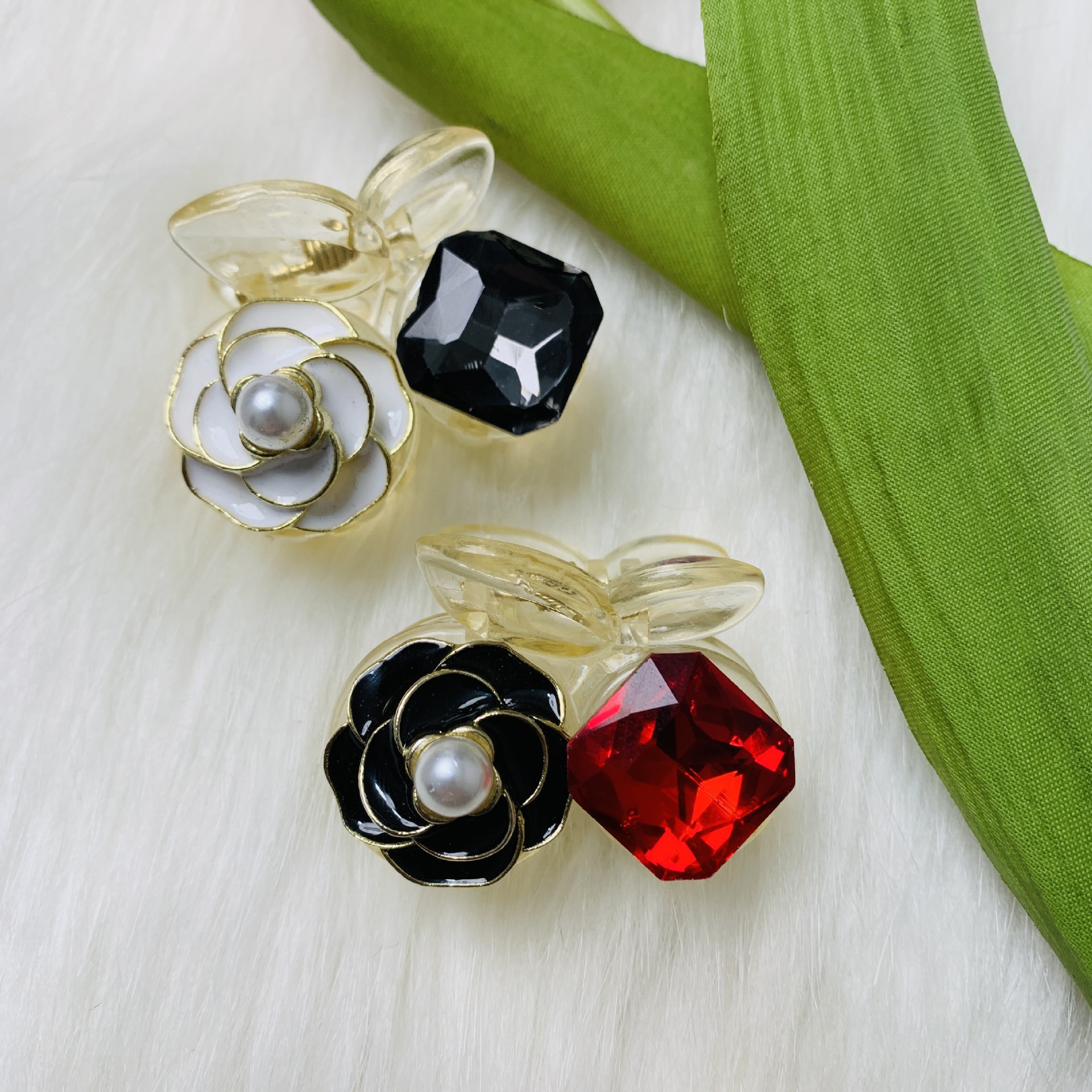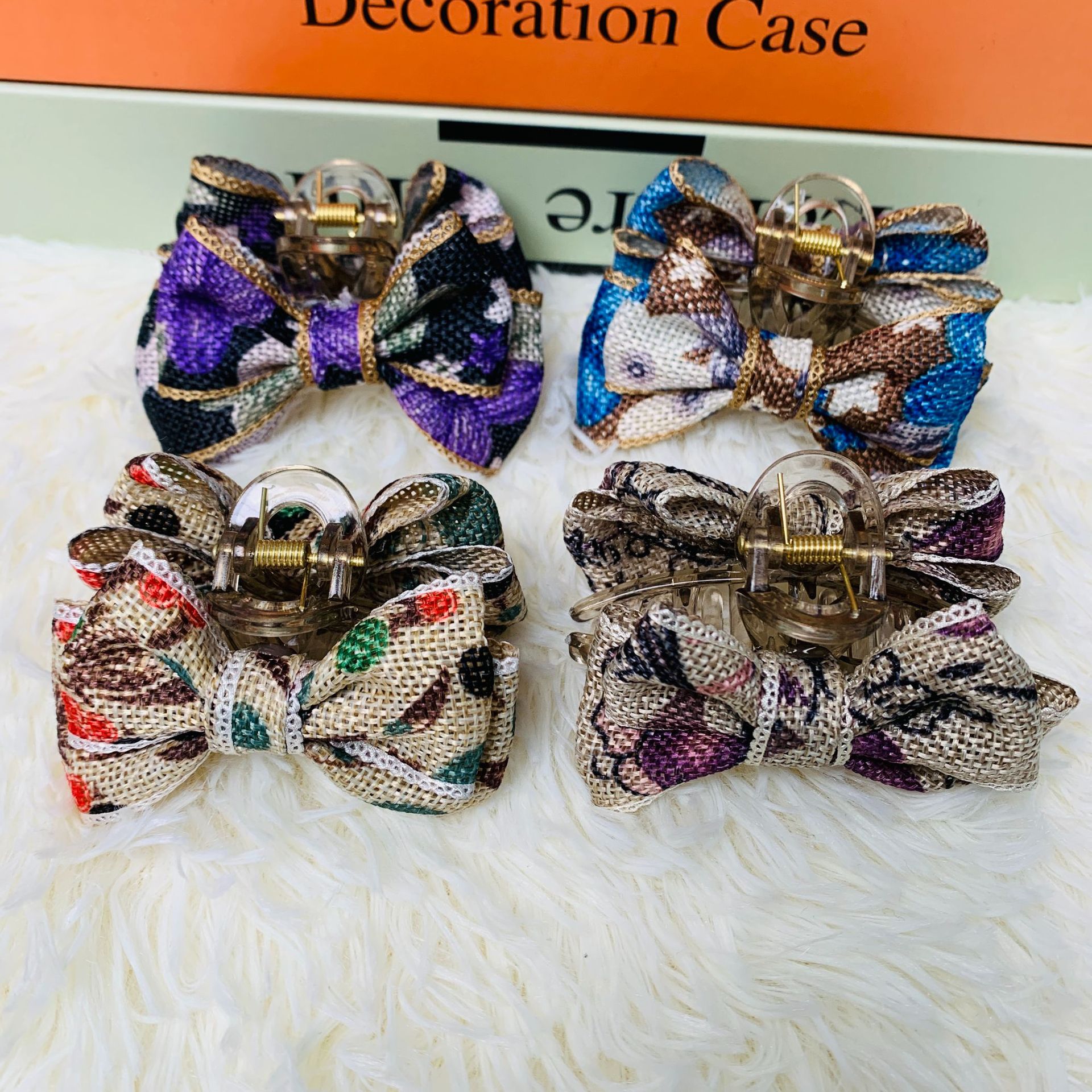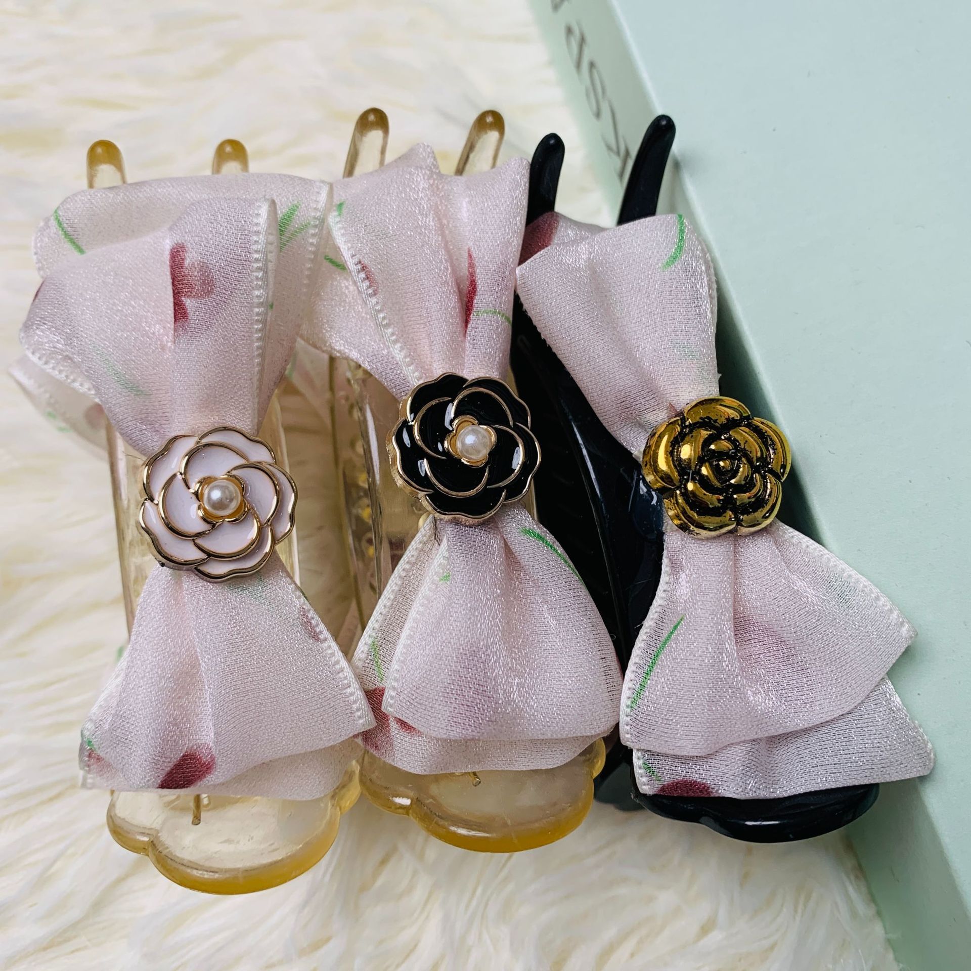 2024韓国版清新山茶花小香風蝶結び髪クリップレトロ手作り布芸高馬尾髪飾り