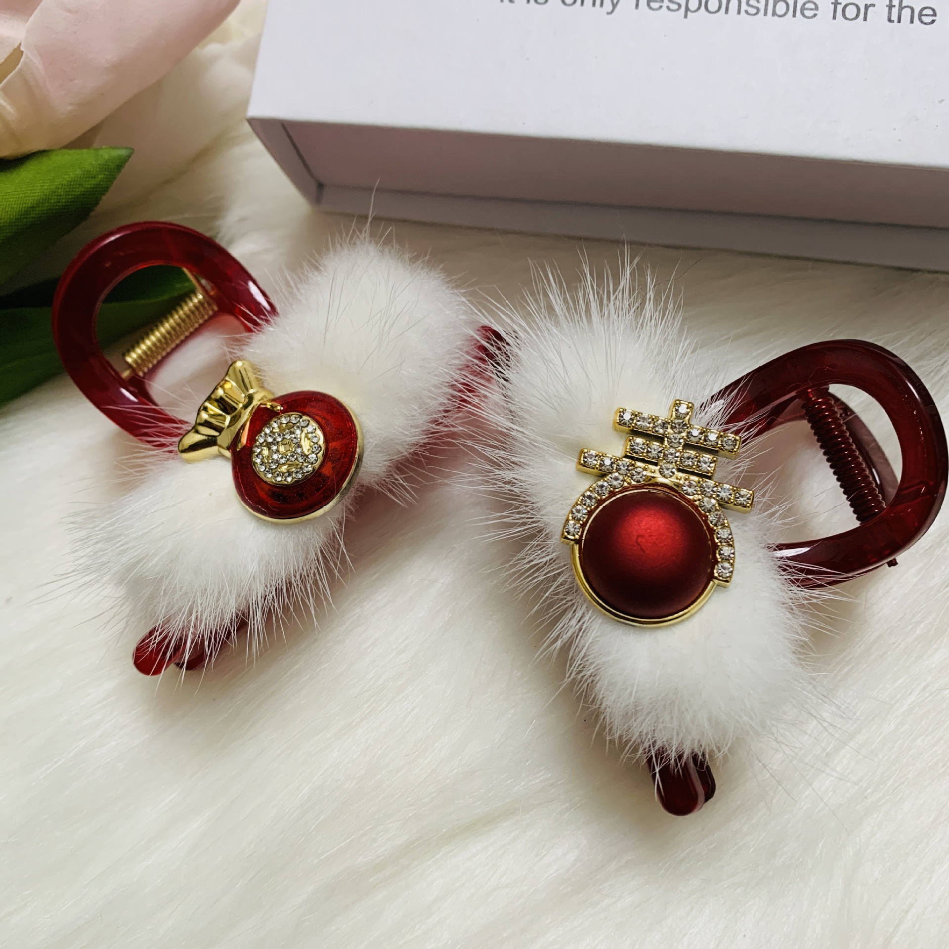 新年の髪飾り秋冬の赤い福袋の毛のつかみはお祝いの白鳥を挟みます。