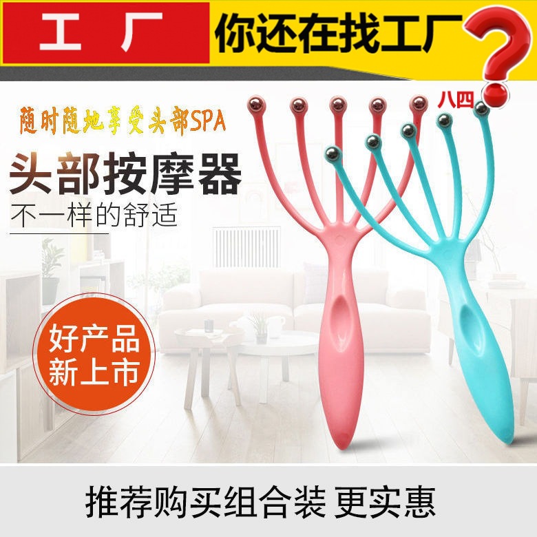 マッサージボールの頭を櫛でつかみます。神器の頭をマッサージします。
